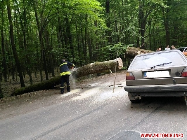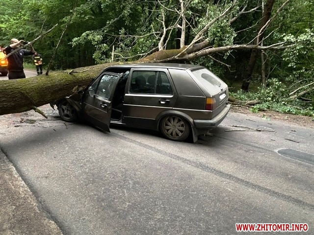 На світанку 16 червня у Житомирі автомобіль в’їхав у дерево, яке впало на дорогу. ДТП сталася на Вільському шляху.