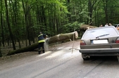 «Зокрема, 16 червня вже о 4:43 фахівці аварійно-рятувальної частини вихали на надання допомоги по вул. Вільський шлях в обласному центрі. Там на проїжджу частину впала вільха, в яку в’їхав автомобіль. Водій автівки й викликав рятувальників», – йдеться у повідомленні.