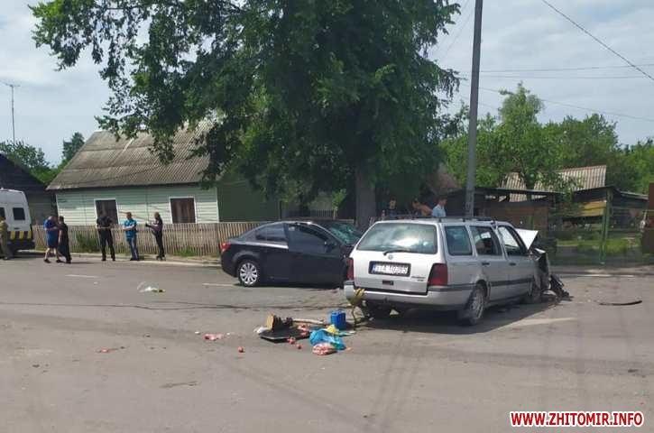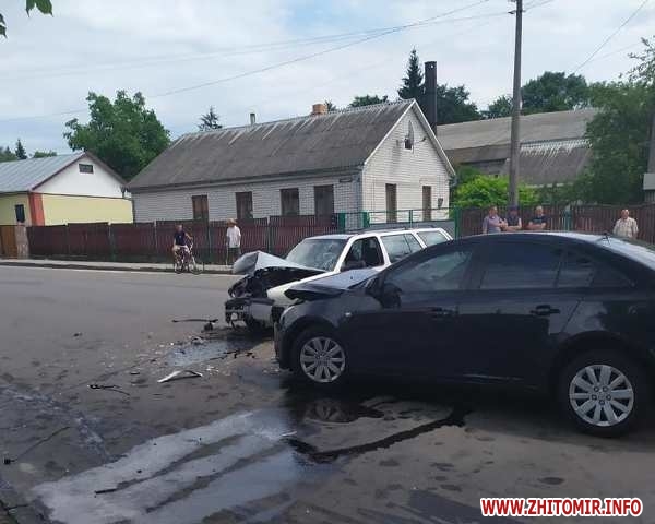 У Олевську Житомирської області 20 червня близько 13:00 зіштовхнулись Volkswagen та Chevrolet. Внаслідок ДТП травми отримали четверо людей. За кермом одного з автомобілів був поліцейський.