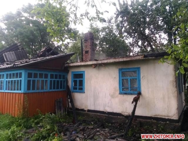 У Новоград-Волинському районі Житомирської області 21 червня загорівся будинок, в який влучила блискавка. Палаючу хату гасили вогнеборці та селяни.