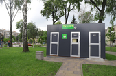 Біля головного входу в парк встановили сині пластикові біотуалети. Вони «не виділяють» характерного запаху та відносно чисті.