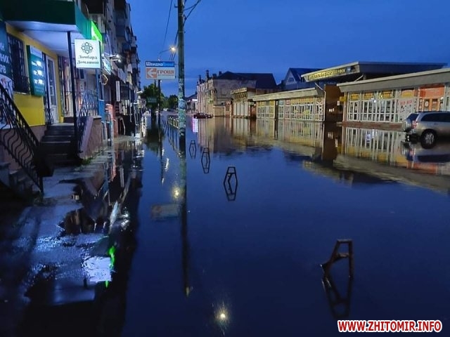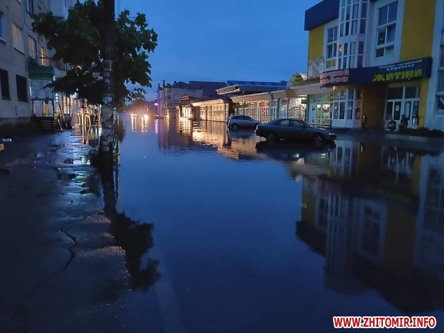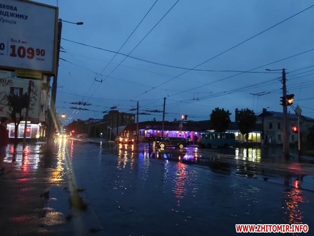Ввечері 22 червня після грози та зливи у Житомирі вулиці Покровську та Хлібну залило водою.
