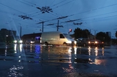 На перехресті Покровської та Грушевського посеред дороги стоїть автомобіль і не може виїхати. Зупинився і тролейбус на Покровській. Вся проїжджа частина у воді, рух транспорту ускладнений.