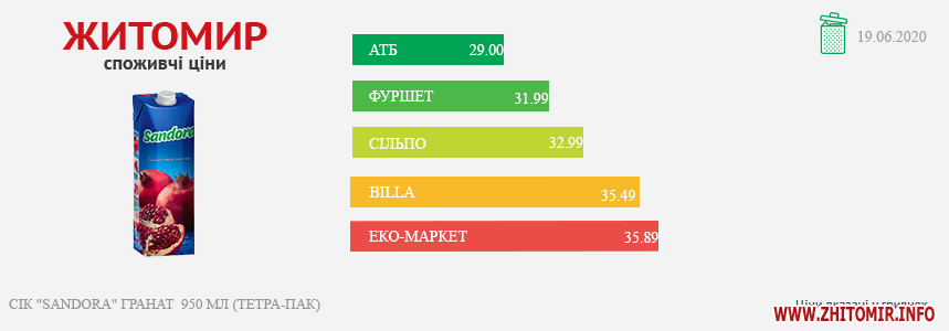 МОНІТОРИНГ ЗДІЙСНЕНО МЕТОДОМ КОНТРОЛЬНОЇ ЗАКУПІВЛІ, У МІСЦЯХ ПРОДАЖУ: AТБ, пр. Миру, 15 А, ЕКО-маркет, вул. Мала Бердичівська, 2/7, Billa, пр. Миру, 15, Фуршет, вул. Вітрука, 9 а, Сільпо, майдан Житній ринок, 1