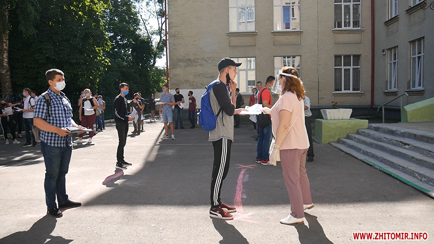 За словами заступниці, яка спостерігала за проведенням тестування у Житомирському будівельному коледжі, в аудиторії має перебувати до 15 осіб, а учасникам дозволяють виходити в коридор на кілька хвилин, щоб зняти маску.