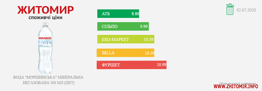 МОНІТОРИНГ ЗДІЙСНЕНО МЕТОДОМ КОНТРОЛЬНОЇ ЗАКУПІВЛІ, У МІСЦЯХ ПРОДАЖУ: AТБ, пр. Миру, 15 А, Billa, пр. Миру, 15, Сільпо, майдан Житній ринок, 1, ЕКО-маркет, вул. Мала Бердичівська, 2/7, Фуршет, вул. Вітрука, 9 а