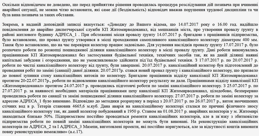 Провадження за позовом директор КП «Житомирводоканал» Короловський суд відкрив ухвалою від 12 жовтня 2017 року, розгляд справи затягнувся на 2,5 роки.