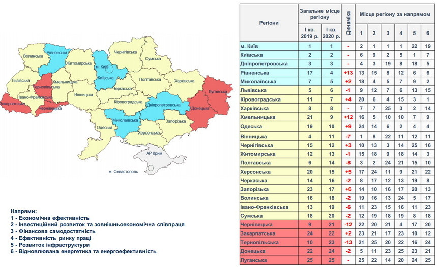 За результатами першого кварталу 2020 року в рейтингу Мінрегіону Житомирська область займає 13 місце серед 25 регіонів України, тоді як за підсумками І кварталу 2019 року вона посідала 12 сходинку.
