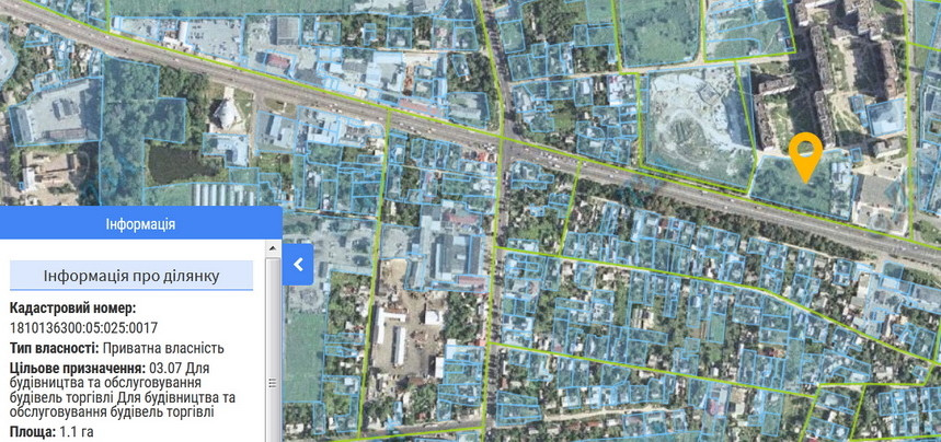В кадастровій карті цільове призначення зазначеної земельної ділянки - для будівництва та обслуговування будівель торгівлі