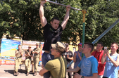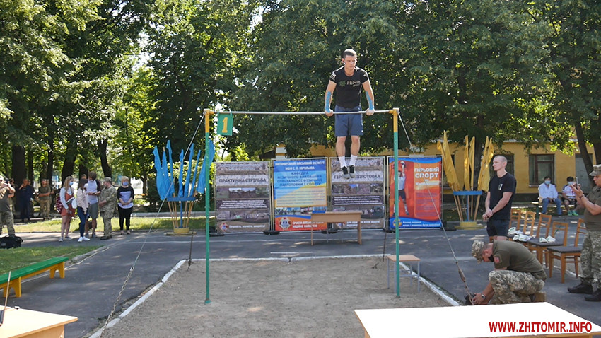 Курсант Житомирського військового інституту імені С. П. Корольова Дмитро Косатий встановив рекорд України: впродовж кількох годин він безперервно виконував вправу підйом з переворотом на перекладині. За словами начальника ЖВІ Олександра Левченка, у навчальному закладі шанують спортивні традиції, а вправа, яку виконує Дмитро, є складною не лише фізично, але й психологічно.