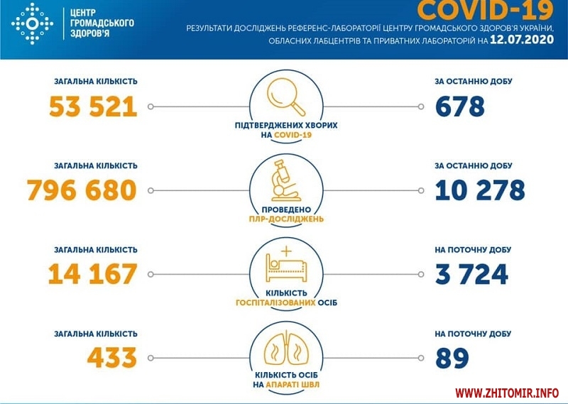 Як повідомляв Житомир.info, станом на 9:00 год. 11 липня 2020 року в Україні було лабораторно підтверджено 52 843 випадки COVID-19. Зокрема за попередню добу зафіксували 800 нових випадків.