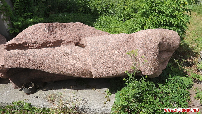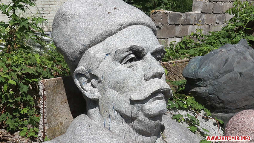 На подвір’ї лежать гранітний тулуб Леніна, бюст Карла Маркса та Олександра Пархоменка. В одному з приміщень підприємства нам показують кілька пам'ятних дощок та знак на честь нагородження Житомира Орденом Червоного Прапора. Інші лежать деінде на території.