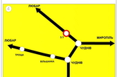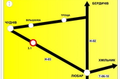 Організація руху в напрямку міста Любар здійснюватиметься шляхами: Н-03 Житомир – Чернівці (км 50+540), О 062345 Вільшанка – Краснопіль – Суслівка, О 062346 Чуднів - Іванопіль, Н-02/М-06/ - Кременець – Біла Церква – Ржищів – Канів – Софіївка (км 235+570). А саме, через населені пункти: Чуднів – Вільшанка - Волосівка – Троща – Краснопіль – Панасівка – Юрівка.