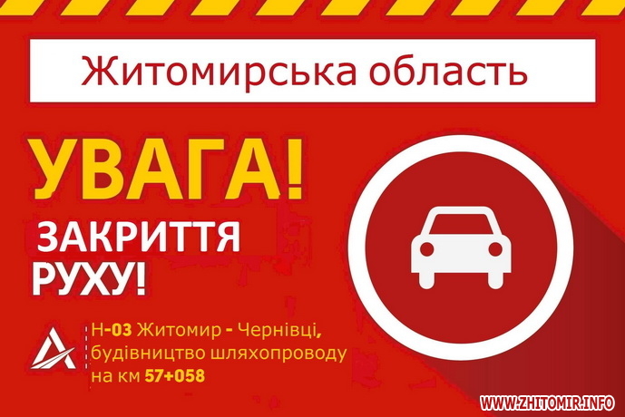 «До уваги водіїв! Рух автопроїздом через залізницю, що неподалік Чуднова, буде закрито! Із 22 липня, у зв’язку з розпочатим будівництвом нової штучної споруди на кілометрі 57+058 шляху Н-03 Житомир – Чернівці, рух автопроїздом через залізницю на перегоні Чуднів-Волинський - Разіне буде закрито», - йдеться у повідомленні.