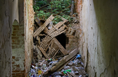 Зараз тут - руїни без даху. Підлога густо встелена пластиковим сміттям, перекриття другого поверху падає. Залазити у середину небезпечно.