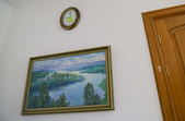 О, а попільничку помічник забрав. Тут у мене завжди стоїть попільничка. Єдине, що можу собі дозволити з кавою. Так я палю IQOS, але з кавою виходжу сюди перекурити. Ось це - також подарунки, сувеніри. Єдина ікона, яку мені подарували у монастирі у Кип'ячому. Всі інші ікони, картини тут були, нічого не знімав, нічого не змінював. Весь цей «соцреалізм» був до мене і залишиться після мене.