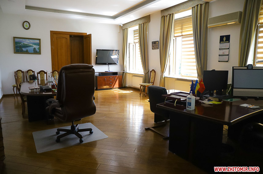 Голова Житомирської ОДА Віталій Бунечко говорить, що йому нема чого приховувати і проводить екскурсію своїм кабінетом.