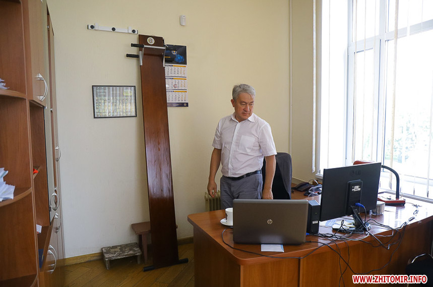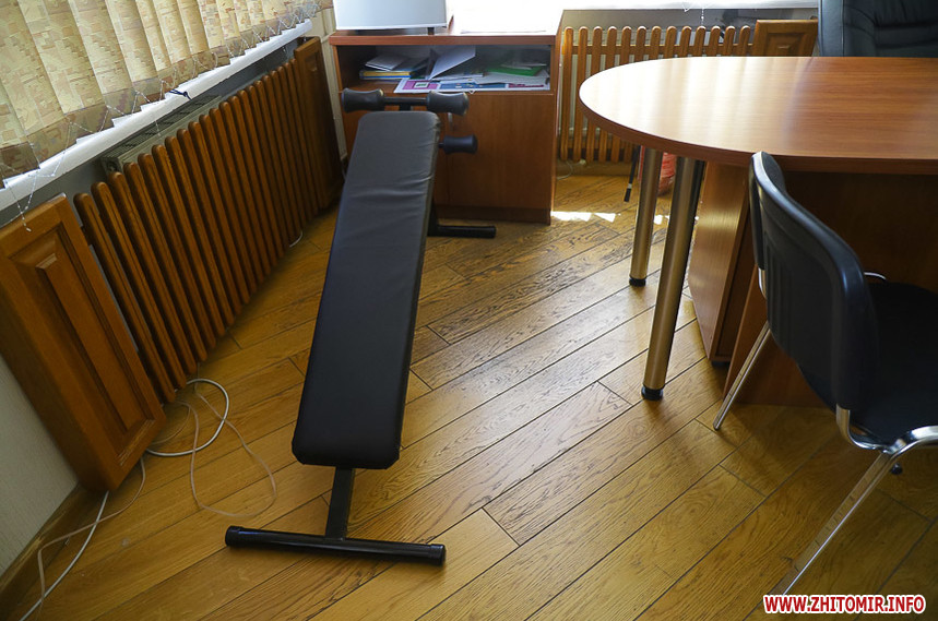 Вже по виходу з кабінету помічники показують сусідній кабінет, у якому облаштований мініспортзал, кажуть, що тут займаються усі, навіть Віталій Іванович.