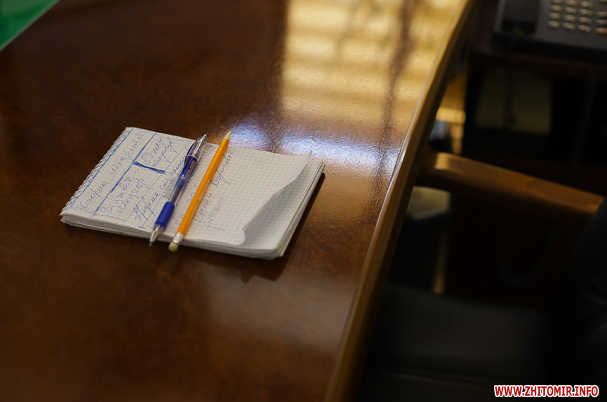 «Єдине, що іноді тут можуть лежати, – папери. Але вони переважно знаходяться у помічників, і коли я заходжу, то мені їх приносять на підпис. У мене є традиція, що я в себе папери не тримаю. Єдині «папери», які у мене тут є, - питання, які я залишив до юридичного департаменту. Інші документи я відпрацьовую і здаю одразу. На цих папірцях у мене «записки ідіота», як я кажу - це питання нагальні, які необхідно вирішити.