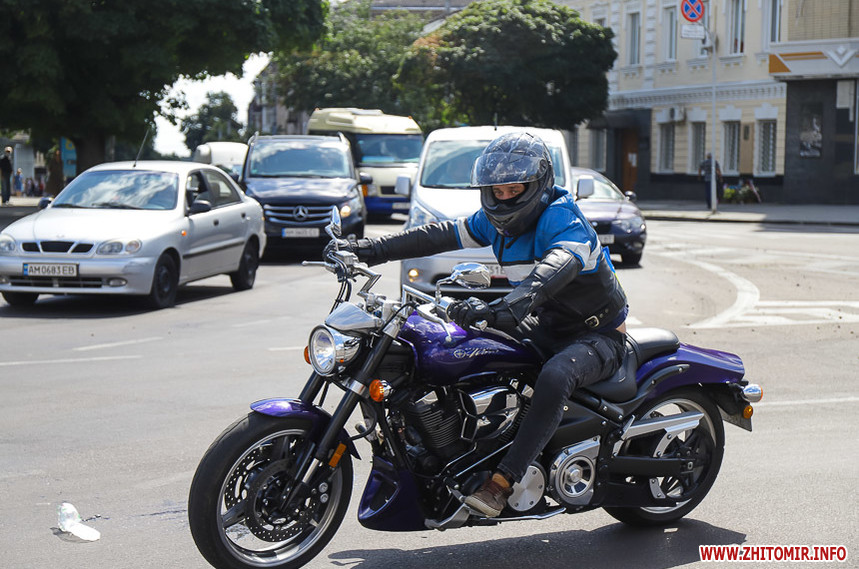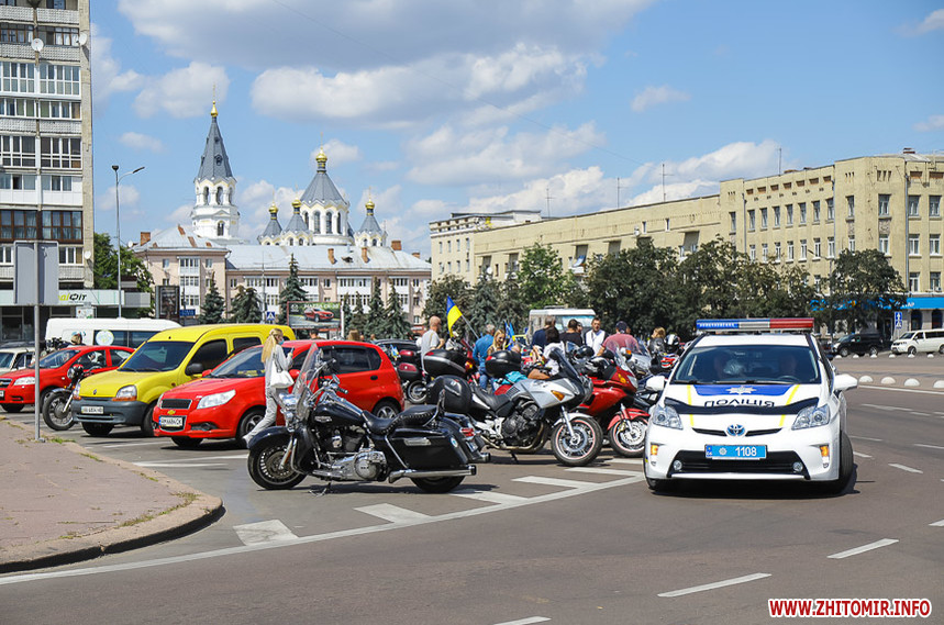 В обідню пору 24 липня на майдан Соборний Житомирі прибули 60 мотолюбителів, учасників акції «За єдність України».