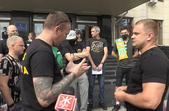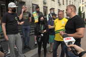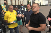 «Хочу, щоб ви дещо зрозуміли. Тут зараз вболівальники житомирського «Полісся». Вони займають нейтральну позицію щодо вас, щодо директора клубу. Нам ваші перепалки нецікаві взагалі. Ми вболіваємо за футбольний клуб «Полісся». Більше половини з нас були АТО, воювали, у нас є троє вболівальників, які загинули. І «Полісся» у нас в серці. І якщо ви не зможете в правовому полі, не в правовому полі, будуть на вас тиснути, чи не будуть на вас тиснути, і ви не зможете домовитись, щоб футбольна команда, клуб міг нормально функціонувати і працювати, то ми будемо по-іншому діяти. Колись ми в сміттєвих баках вас возили. Мабуть, доведеться знову починати це робити. Ми вас просимо, візьміть, без скандалів нормально домовтесь», - каже вболівальник житомирського «Полісся» Олексій Сорокопуд.