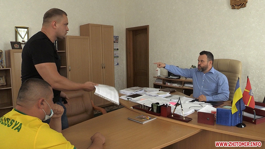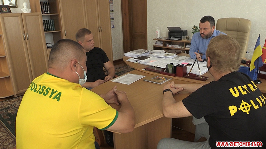 Щоб з'ясувати, чому умови на спортивній базі не відповідають рівню команди Першої ліги, вболівальники «Полісся» зібрались під стінами обласної ради. До фанів вийшов директор Житомирської обласної школи вищої спортивної майстерності Василь Грибук. Чиновник каже: футболісти не мають права проживати на території бази, бо та перебуває в стадії капітального ремонту.