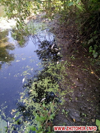 Нагадаємо, 21 липня жителі села Першотравенськ Баранівського району викликали екологів, аби зафіксувати факт замору риби на річці Хомора. Тоді екологи виявили нестачу розчинного кисню у воді – 2,9 мл, при нормі 4,0 – 6,0 мл.