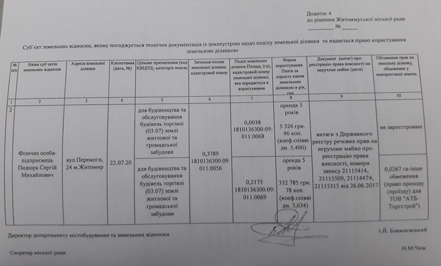 На черговій сесії Житомирської міської ради 30 липня за чотири години депутати розглянули майже 40 питань, з яких 12 були «земельними». Саме під час розгляду питань щодо землі народні обранці кілька разів заявляли про «конфлікт інтересів», при цьому прізвища депутатів зазвичай були не в оприлюднених перед сесією проєктах рішень, а у пропозиціях, за які голосували без обговорення.