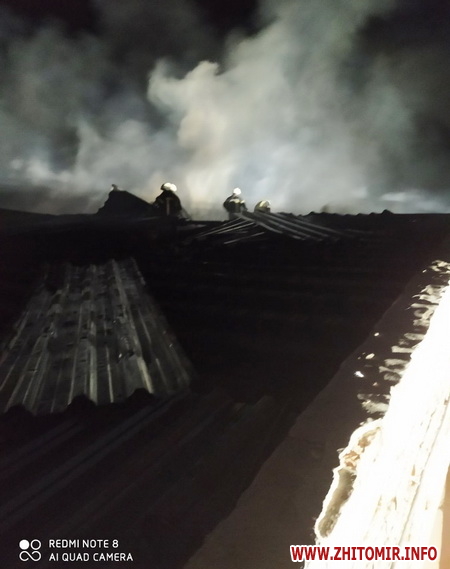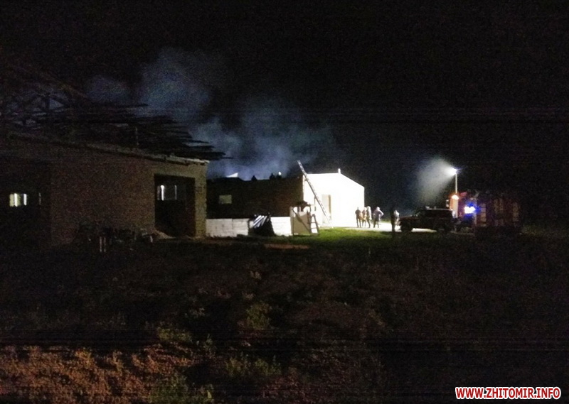 «31 липня о 22:28 до служби порятунку «101» надійшло повідомлення про пожежу в с. Гай Житомирського району, в приміщенні ферми місцевого ТОВ. На момент прибуття відділення рятувальників 2-ї Державно пожежно-рятувальної частини вогнем було охоплено дерев’яну покрівлю споруди на площі 700 кв.м», - йдеться у повідомленні.