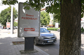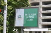 Крім того, на вулицях можна побачити рекламні плакати політичної партії «Слуга народу», з яких житомирянам нагадують, що саме вони є господарями на своїй землі, «лівої опозиції», яка щось перемагає, та політичної партії «За майбутнє» з мальовничими пейзажами карпатських гір, які є дуже близькими для жителів Полісся.