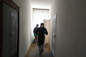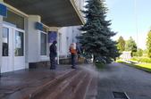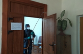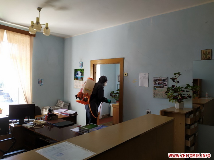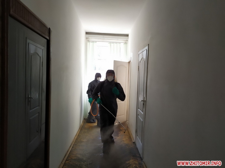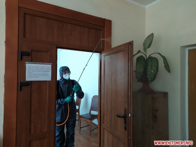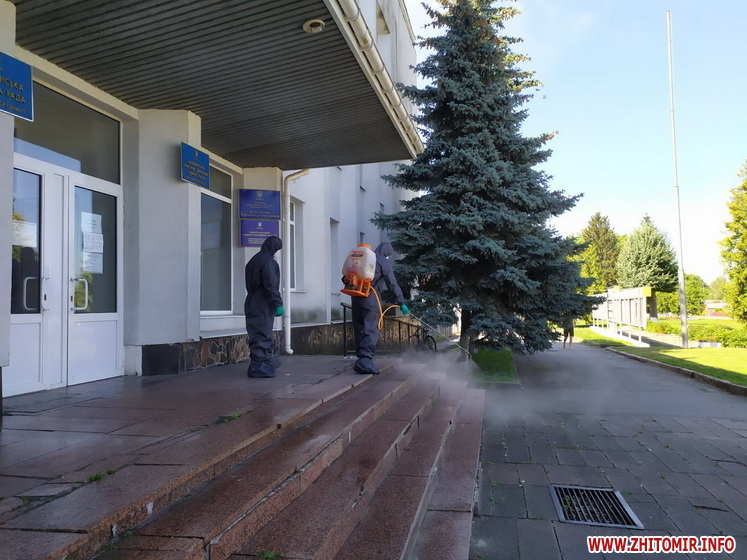 «У смт Ємільчине рятувальники продезінфікували будівлю райдержадміністрації, де напередодні у працівниці підтверджено COVID-19. Оброблено приміщення як зсередини, так і ззовні. Бійці ДСНС проводять таку роботу за допомогою моторизованих та ранцевих оприскувачів, перебуваючи в засобах індивідуального захисту. Для цього застосовується дезрозчин, який безпечний для людей та тварин, але нищівний для подібних інфекцій», – йдеться у повідомленні.