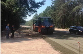 Наразі тривають підготовчі роботи: проводиться звалювання дерев, корчування пнів, а на одній з ділянок вже розпочаті роботи з влаштування основи дорожнього одягу з щебенево-піщаної суміші, укріпленої цементом.