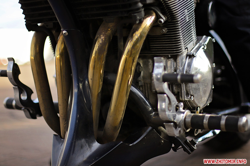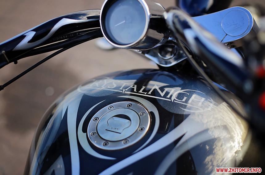 Зараз він їздить на двох ексклюзивних, зібраних на замовлення, мотоциклах. “Ім’я цього мотоциклу - CrystalNight. Це назва групи, у якій я колись грав. Назву цю придумав я, тож і вирішив використати її для мотоцикла, в пошану тим часам, моїй історії в групі. Тут встановлений мотор спеціальної серії SUZUKI Bandit, потужністю 160 л/с.”, - говорить байкер, проводячи рукою по напису.