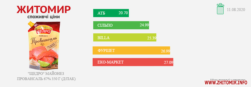 Моніторинг здійснено на основі інформації, отриманої за методом контрольної закупки 28.11.2025 р. у місцях продажу: АТБ, пр. Миру, 15а, Фора, вул. Київська, 106, Метро, вул. Ватутіна, 55в, Сільпо, вул. Житній ринок, 1
