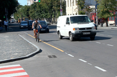 Простір для велосипедистів з’явиться і на Київській, зокрема у мерії розглядають два варіанти: або дві захисні смуги, або з однієї сторони велосмуга на проїжджій частині, а у зворотному напрямку – на тротуарі.