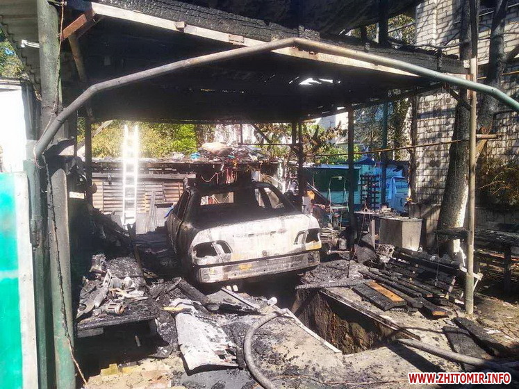 У Житомирі 17 серпня о 14:41 у приватному домоволодінні загорівся автомобіль. Вогонь поширився на металевий піднавіс.