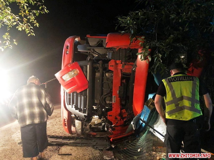 «ДТП сталася 18 серпня близько 21:30 год. Попередньо, водій автомобіля DAF, житель м. Рівне, 1988 року народження, не впорався з керуванням, унаслідок чого авто перекинулось на бік та зіткнулось з парканом. Чоловікові надали медичну допомогу без ушпиталення», – розповіли у ГУ Нацполіції у Житомирській області.