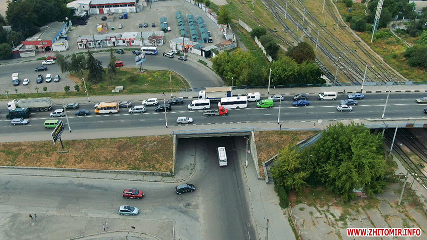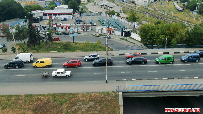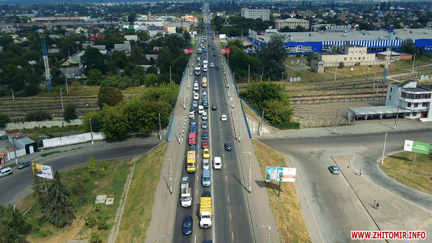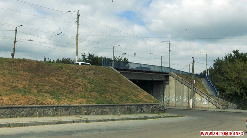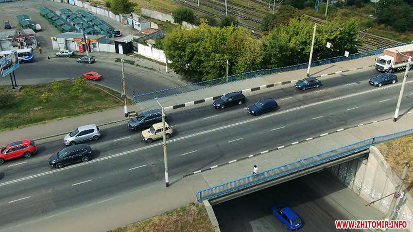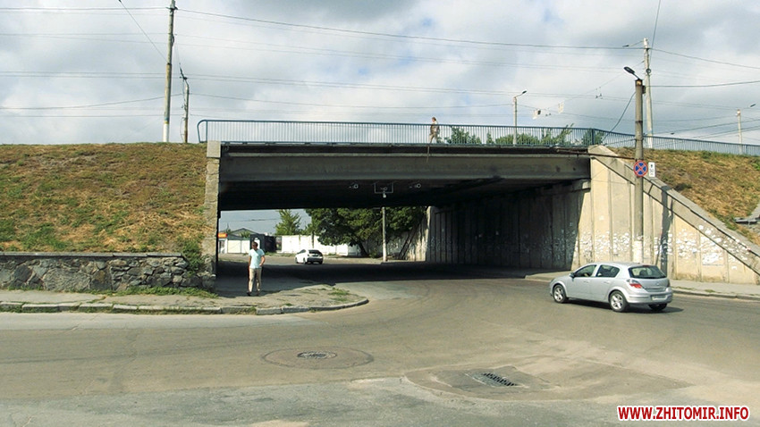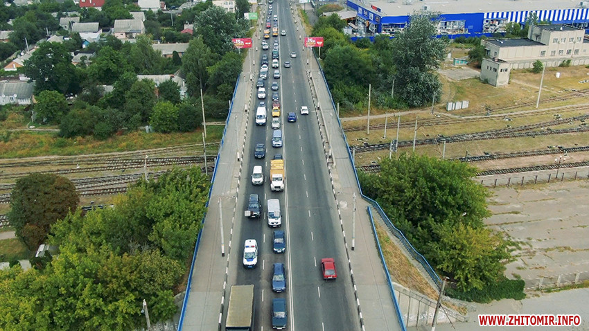 Міст через залізницю в Житомирі було побудовано в 1957-му році. Тоді будівельники розраховували максимальну вагу, яку здатна витримати споруда – це 30-36 тонн. Відтоді вага великогабаритних фур збільшилась, а транспорт часто їздить перевантаженим. Нині ж вантажівки змушені заїжджати в місто через ремонт північної об’їзної. Вантажні авто проїжджають міст і продовжують рух проспектом Незалежності, не заїжджаючи в центр Житомира. Вже зараз на опорах мосту видно тріщини, а загальний стан конструкції не найкращий. Два роки тому розробили проєкт на реконструкцію шляхопроводу на суму 283 млн грн. Але коштів на реконструкцію споруди в міському бюджеті поки немає.