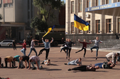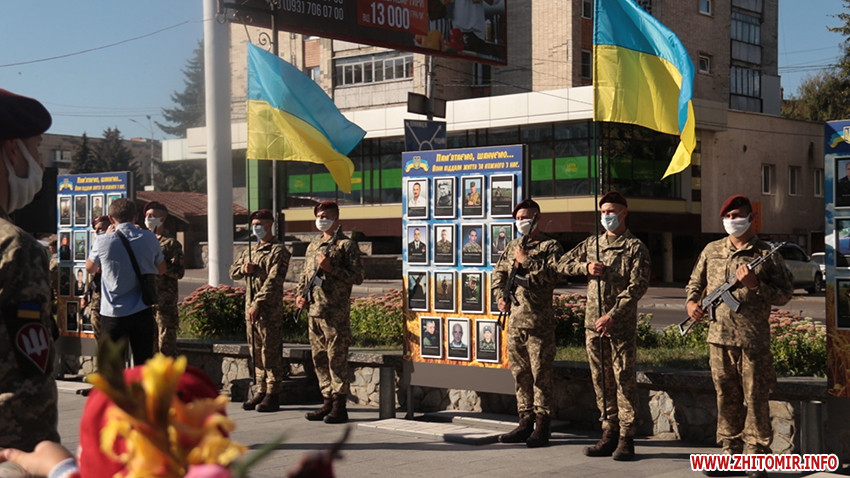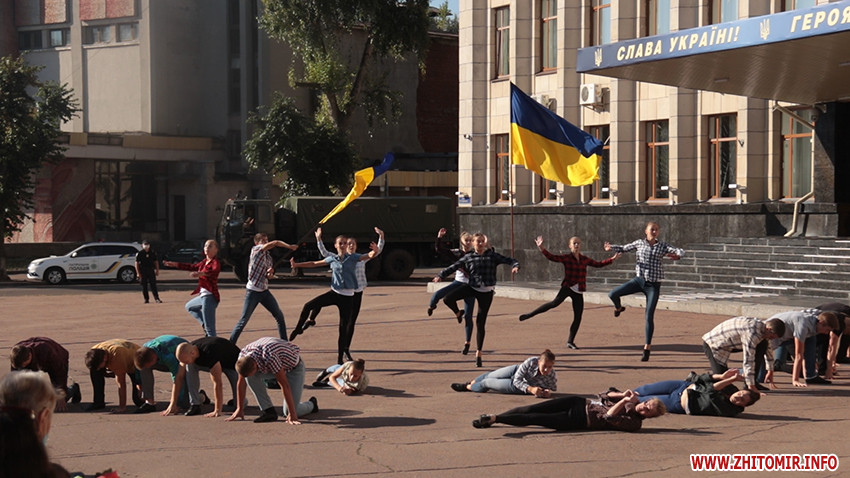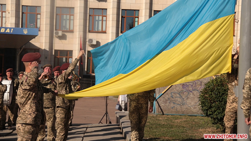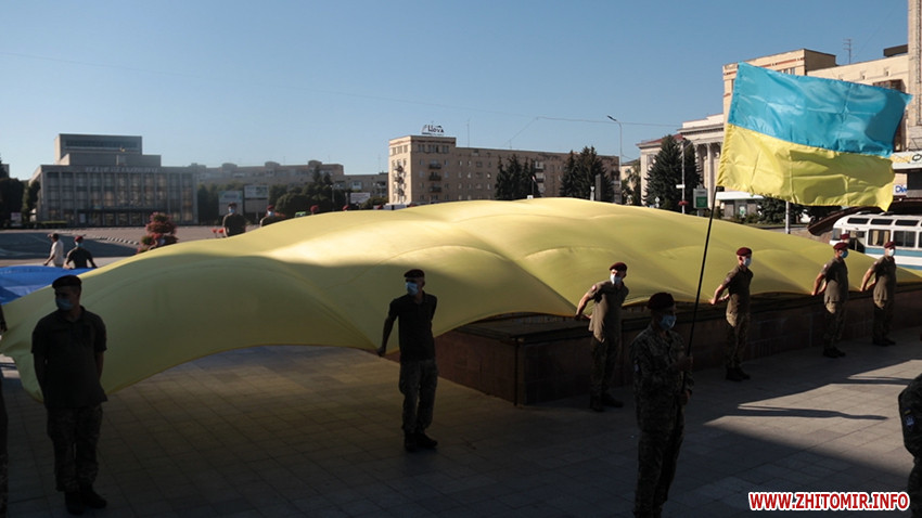 Зранку 23 серпня кілька десятків житомирян прийшли на майдан Корольова на святкування Дня Прапора.