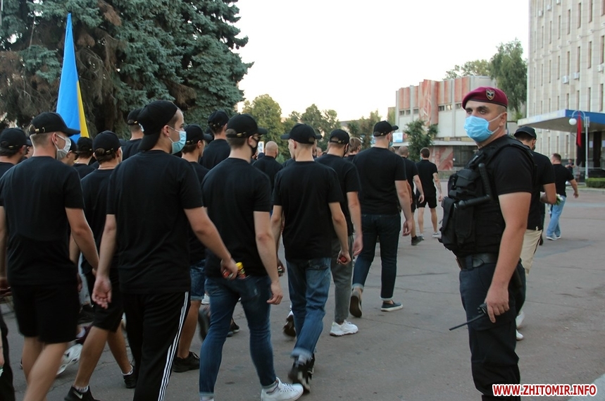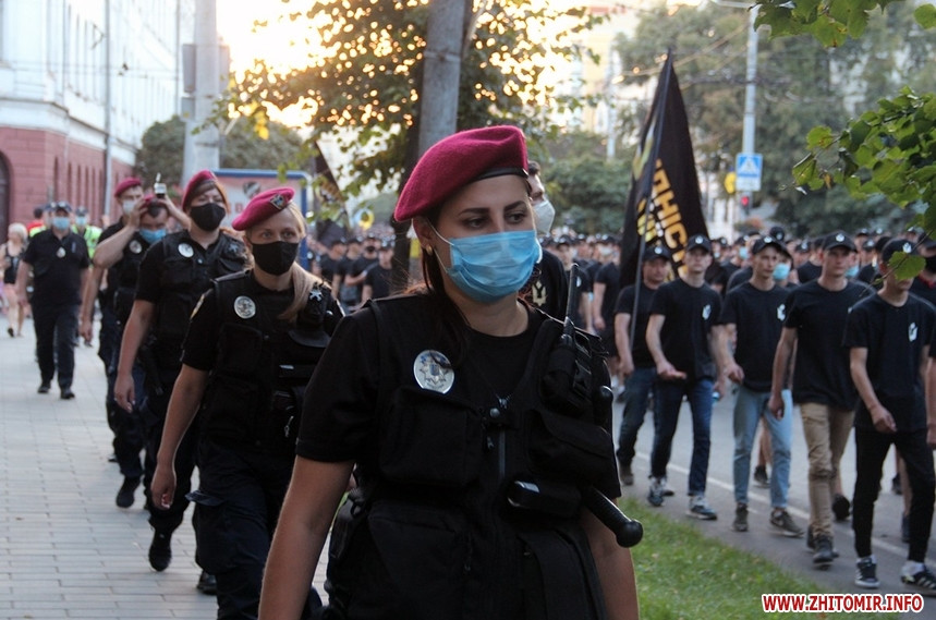 З їхніх слів, на час проведення заходу майдан Соборний перекрили. За правопорядком стежили десятки працівників поліції та Національної гвардії. Близько 19:30 год. люди в чорному організованою ходою, співаючи, рушили вулицею Великою Бердичівською, направляючись до майдану Корольова.