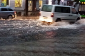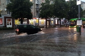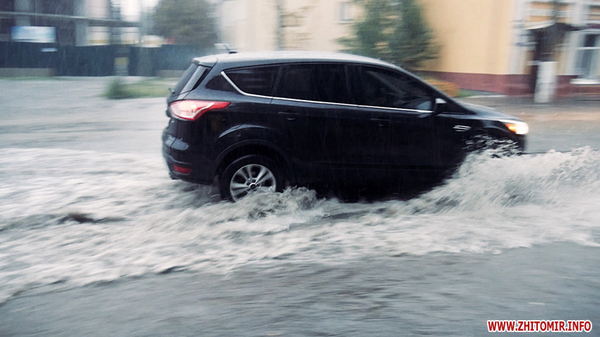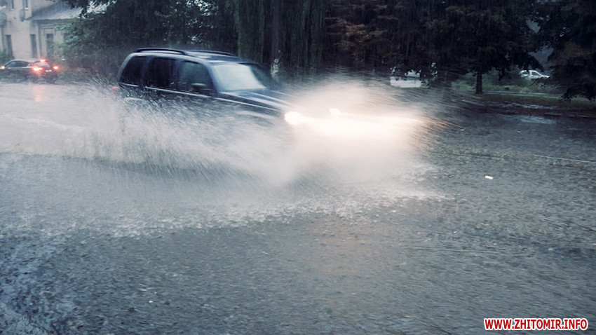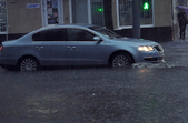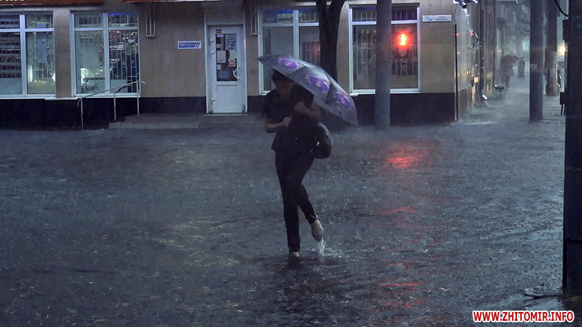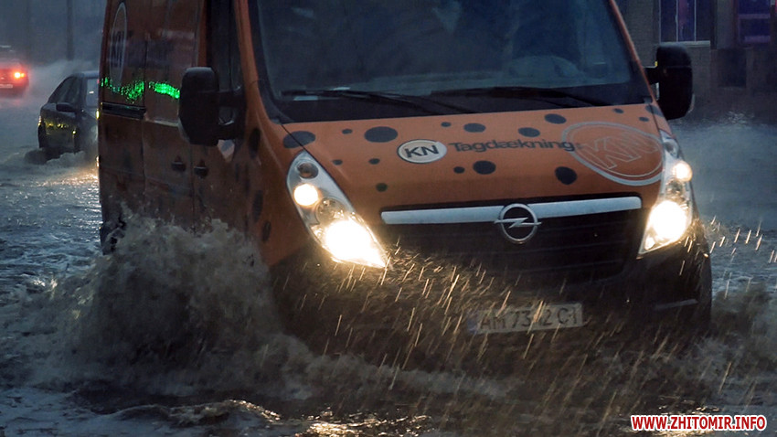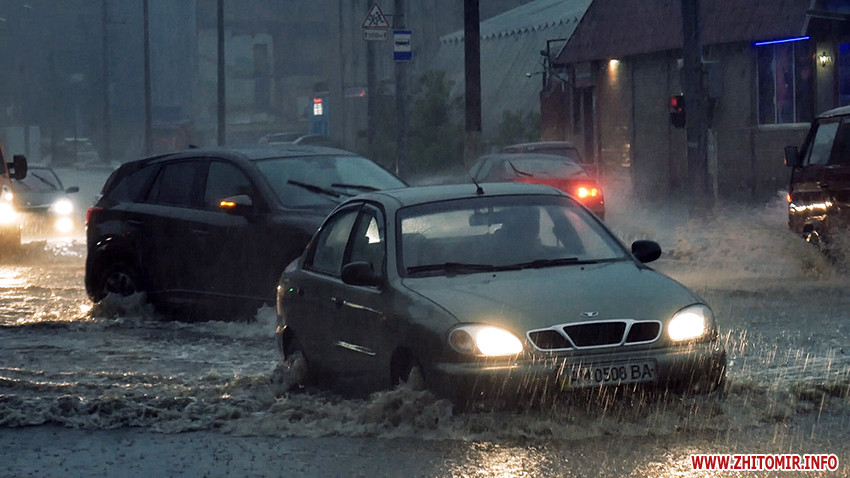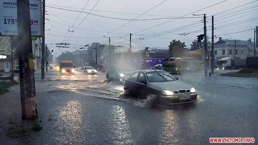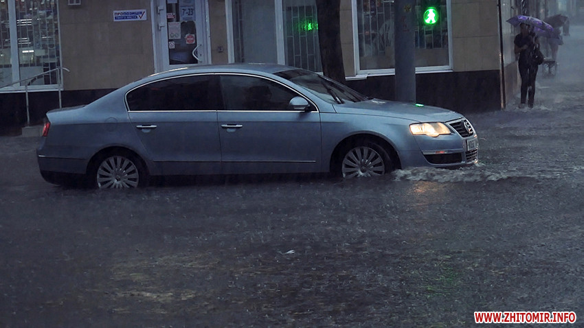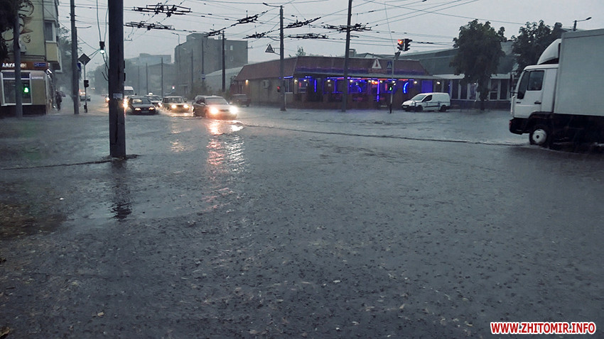 Надвечір 25 серпня рясний дощ з грозою затопив вулиці Житомира.