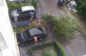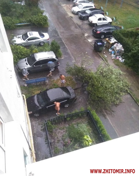 А у дворі по Академіка Тутковського на припаркований автомобіль під час грози впало дерево.