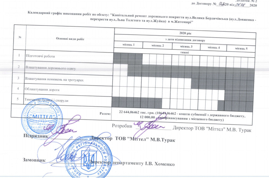 Нагадаємо, наприкінці липня 2020 департамент регіонального розвитку ОДА з третьої спроби провів тендер на капітальний ремонт ділянки Великої Бердичівської від Довженка до вулиць Льва Толстого та Жуйка. Тендер виграло київське ТОВ «МІТТЕЛ» за 22 млн 644 тис. 64,62 грн. Договір уклали 5 серпня. Роботи мають бути завершені до кінця поточного року.