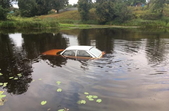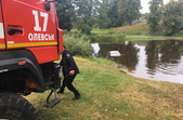 В Олевську Житомирської області 27 серпня рятувальники діставали автомобіль, який плавав у річці.