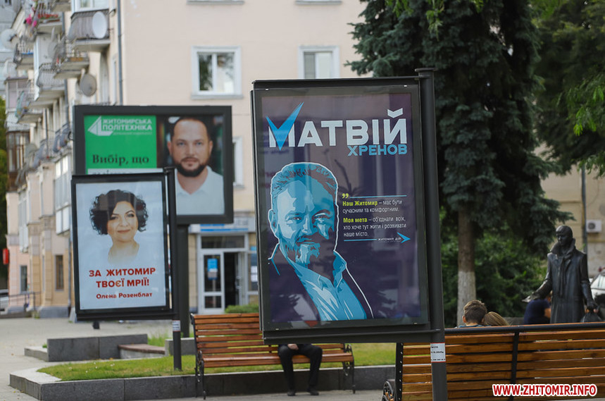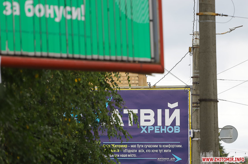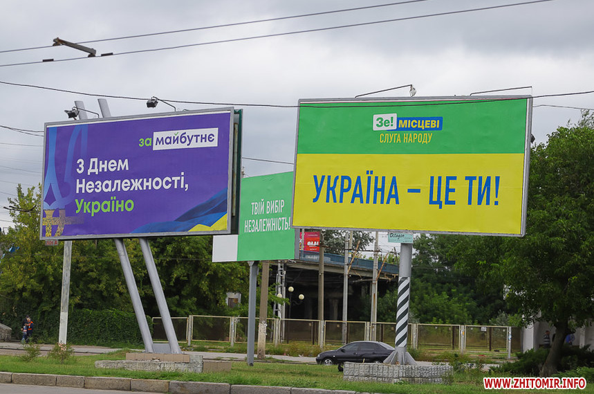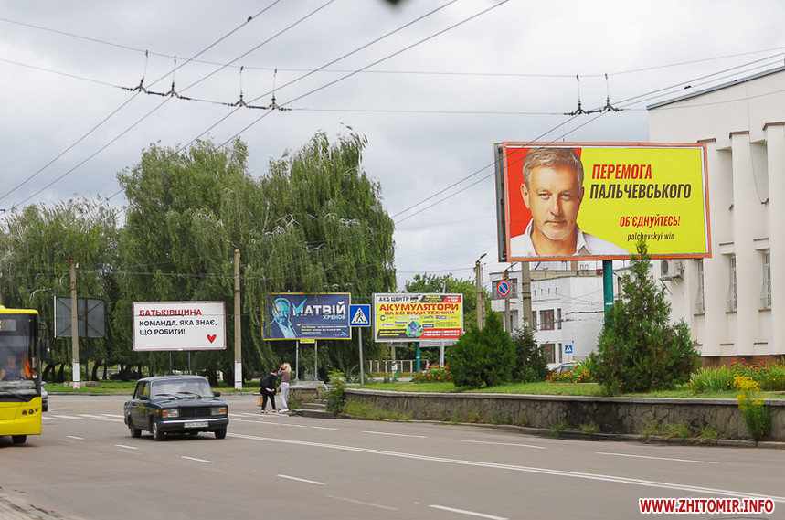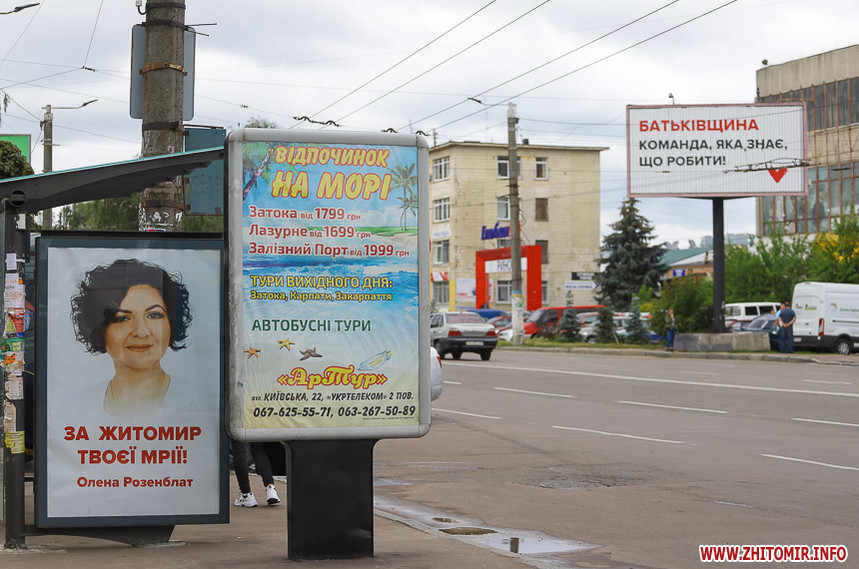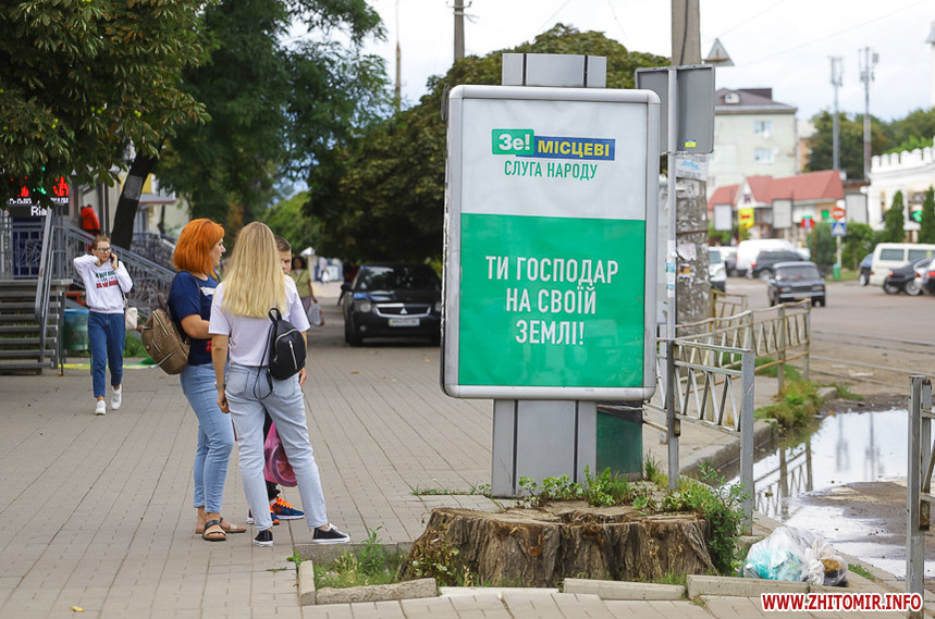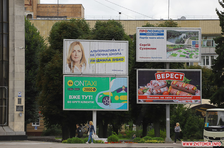 Зараз у Житомирі найбільше реклами партій «Батьківщина», «Слуги народу» та «Пропозиції» і майбутніх кандидатів в мери обласного центру.