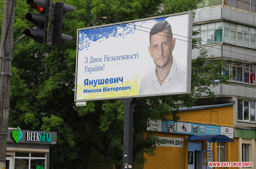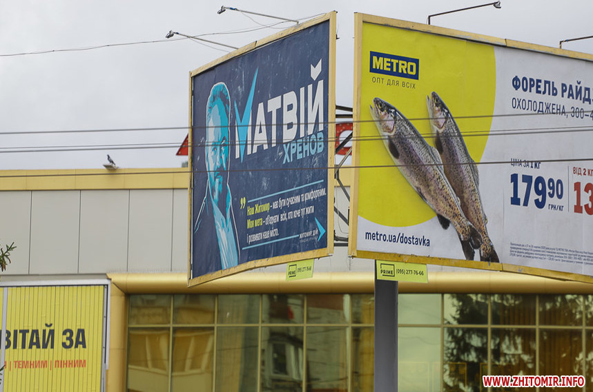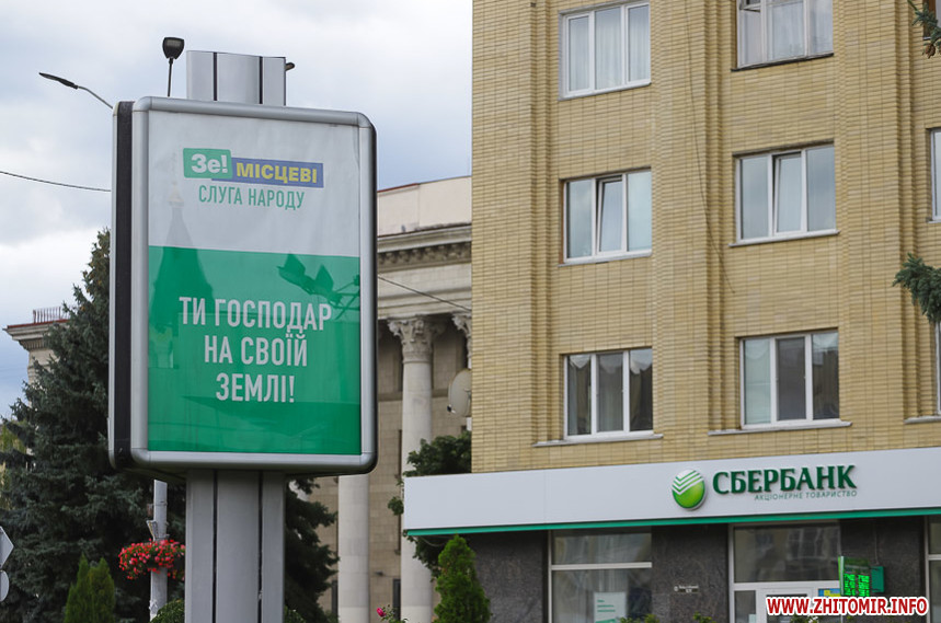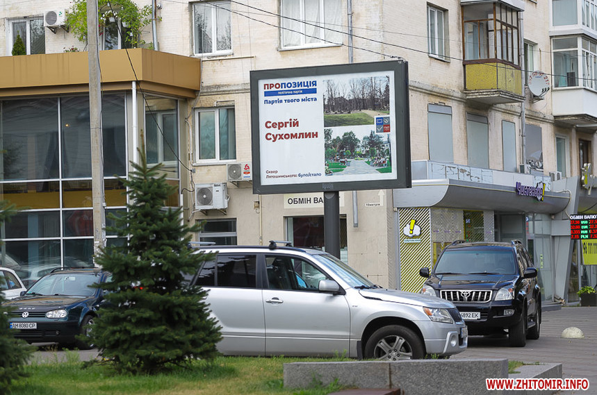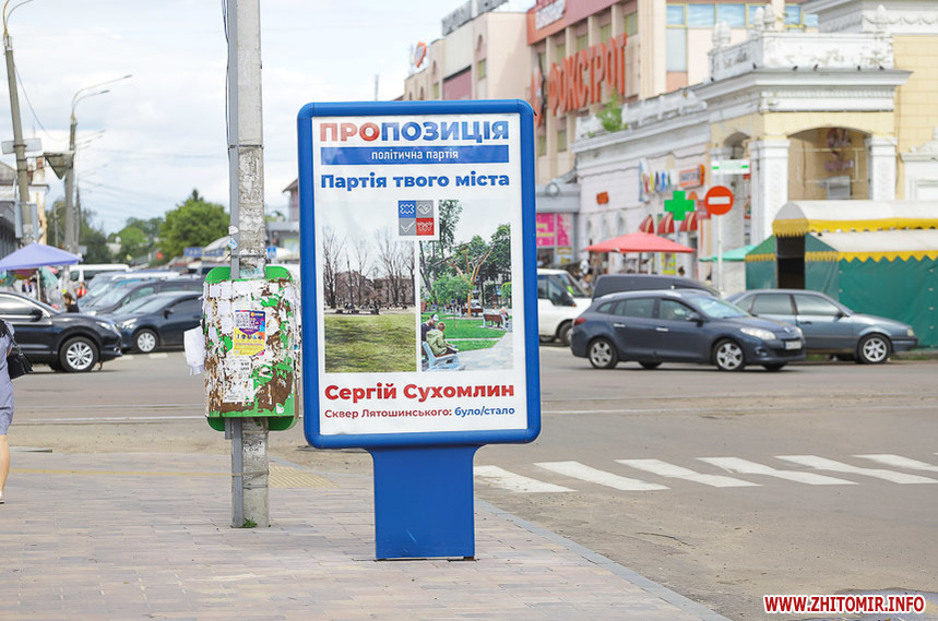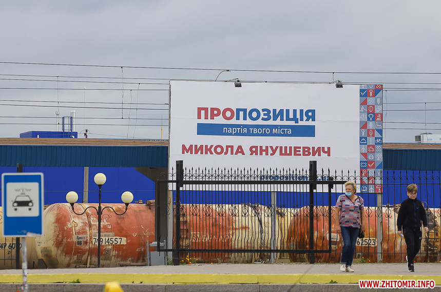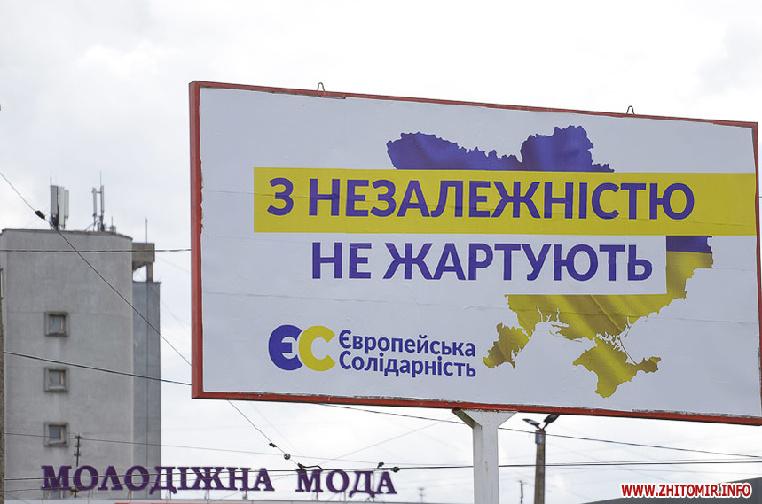 Зараз у Житомирі найбільше реклами партій «Батьківщина», «Слуги народу» та «Пропозиції» і майбутніх кандидатів в мери обласного центру.