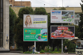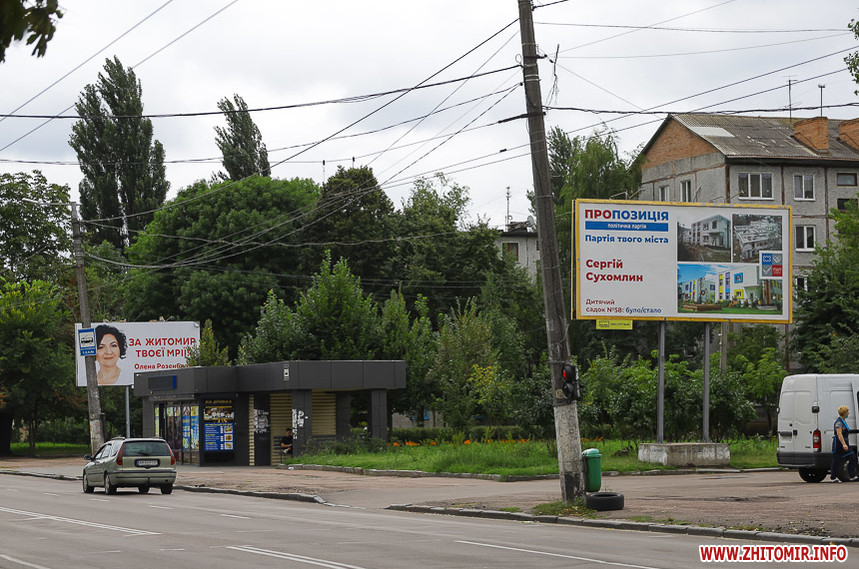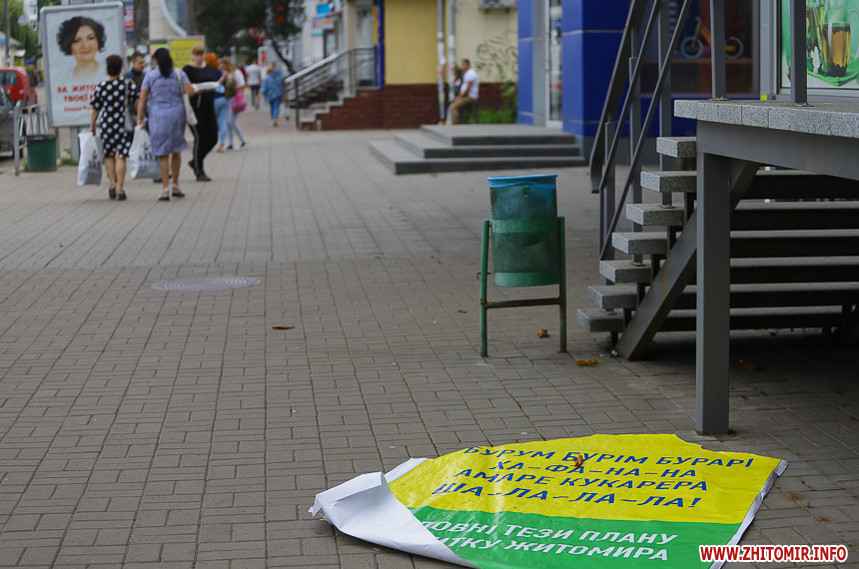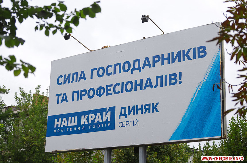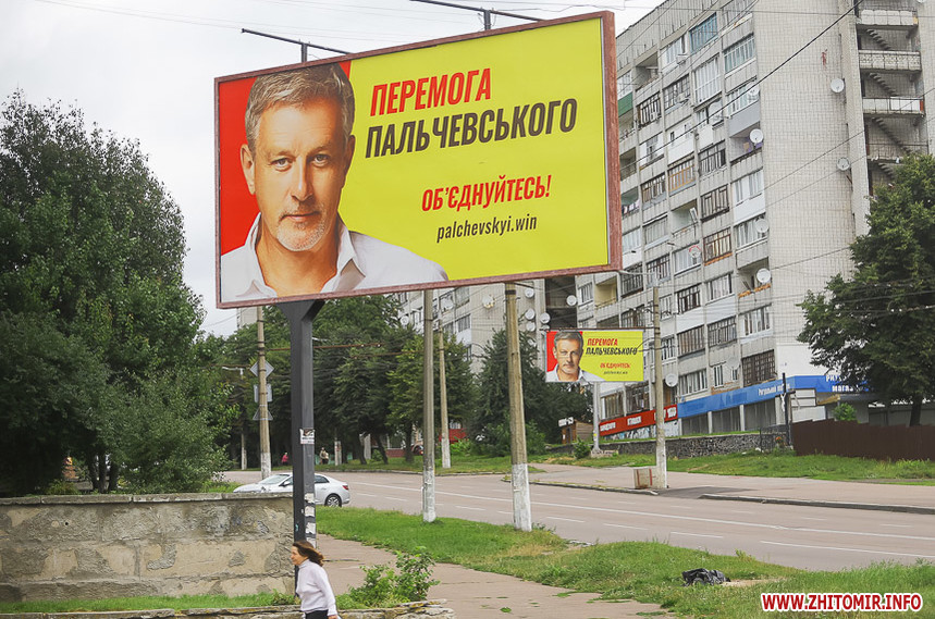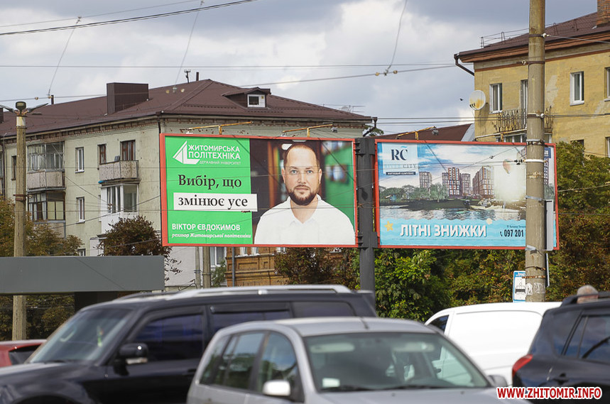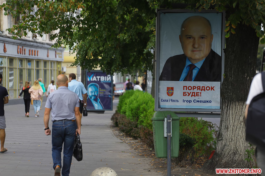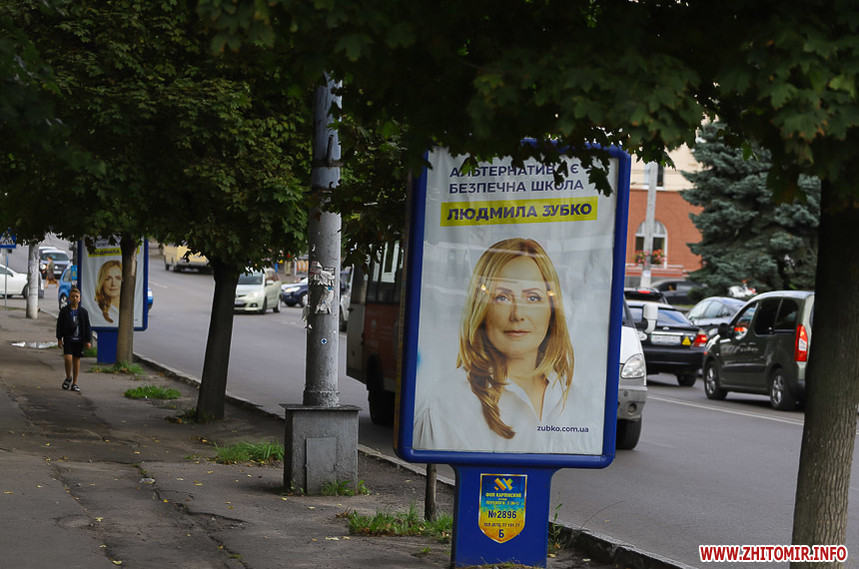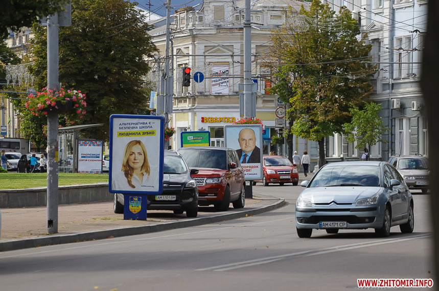 Політична реклама почала активно з’являтися на вулицях міста ще на початку серпня і до кінця літа буквально заполонила вулиці Житомира.