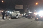 За їх словами, ДТП трапилась близько 23.30 28 серпня. Зіткнулися три автомобілі, один з яких перекинувся на дах. На місце аварії прибули патрульні, «швидка» та автомобіль рятувальників.
