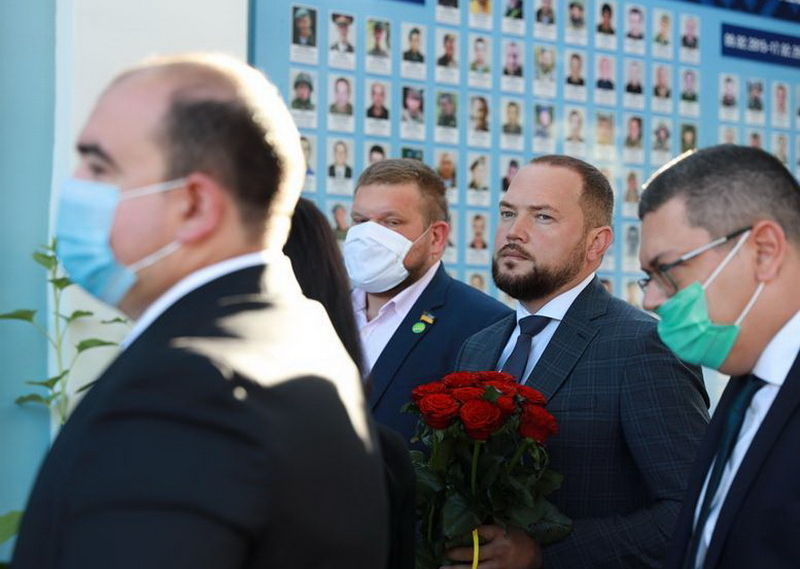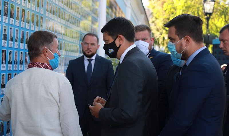 Низько вклонитися та віддати шану загиблим героям прийшли сьогодні до Стіни пам'яті полеглих за Україну Михайлівського Золотоверхого монастиря голова Верховної Ради України Дмитро Разумков, голова Житомирської обласної організації партії «Слуга народу» народний депутат Андрій Клочко, ректор Державного університету Житомирська політехніка Віктор Євдокимов.