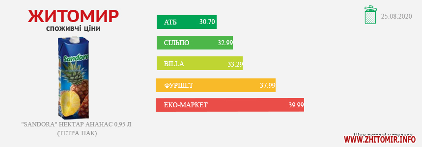 МОНІТОРИНГ ЗДІЙСНЕНО МЕТОДОМ КОНТРОЛЬНОЇ ЗАКУПІВЛІ, У МІСЦЯХ ПРОДАЖУ: AТБ, пр. Миру, 15 А, Billa, пр. Миру, 15, Сільпо, майдан Житній ринок, 1, ЕКО-маркет, вул. Мала Бердичівська, 2/7, Фуршет, вул. Вітрука, 9 а